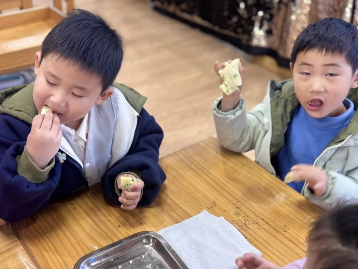 中4班 春日美食——野葱蛋饼 来源: 发布时间:2026-03-30 15:35:36 浏览次数: 次 【字体:小 大】 春天的脚步越来越近,春日的气息也越发浓厚,大自然里,春天的美食正在慢慢苏醒,今天我们和孩子们一起认识了春天的食物——野葱,就用这个野葱和孩子们一起制作了野葱蛋饼,品尝春天的味道。 分享到: 【打印正文】